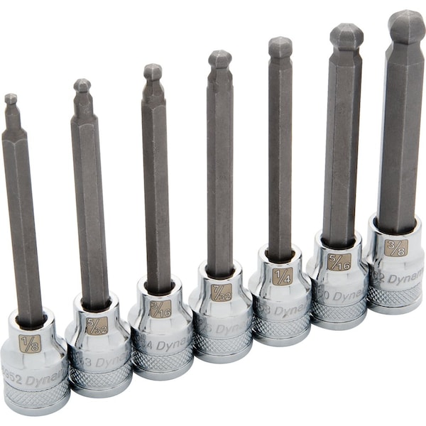 Tools 3/8" Drive 7Pcs SAE, Long Ball Nose, Hex Socket Set, 1/8" - 3/8"