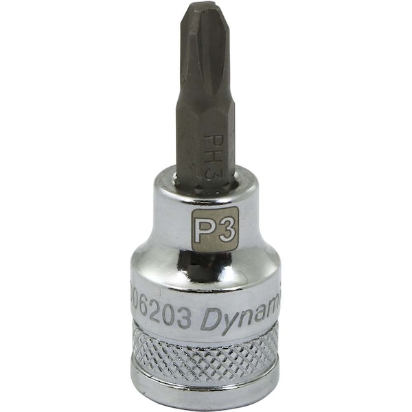 Tools 3/8 Drive Phillips Head, Ph#3 Bit Std Length, Chrome Socket