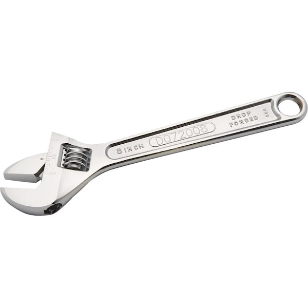 Size: 8". Size graduation markings on head allows for faster adjustment to the correct fastener size. Drop forged for superior durability. Chrome finish for maximum resistance against corrosion. Precision-machined knurl allows for quick and smooth size adjustment. Meets ANSI standards.