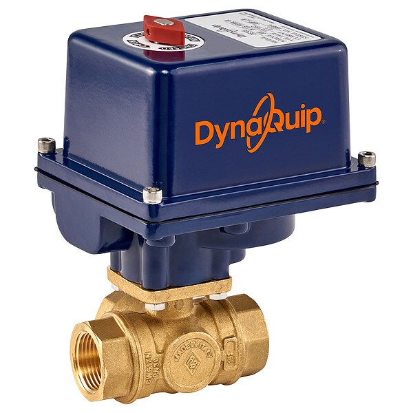 Electrically Actuated Three-Way Ball Valve, Valve Construction Two-Piece, Voltage 12V DC, 24V AC/V DC, Maximum Pressure - Operating 400 psi, Maximum Pressure - Steam 100 psi, Maximum Operating Pressure Differential 300 psi, Fail Safe Position Fail Last, Actuator Operation 90 Degrees , Actuator Cycle Time - 90 Degrees 2.5 sec, Actuator Features Heater, Position Indicator, Thermal Overload Protection, Ball Material Nickel-Chrome Plated Brass, Seal Material PTFE, FKM, Seat Material PTFE