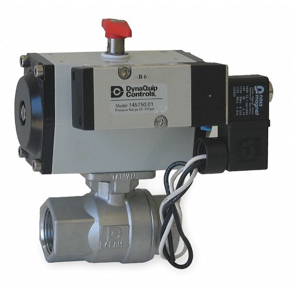 Pneumatic Actuated Ball Valve, Ball Material 316 Stainless Steel, Body Material Stainless Steel, Stem Material 316 Stainless Steel, Seal Material PTFE/Viton(R), Seat Material RTFE