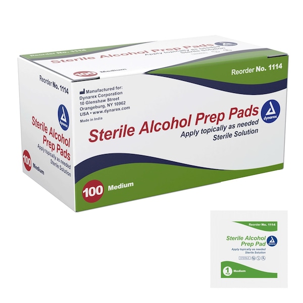 Dynarex Alcohol Prep Pads are single-use sterile pads saturated with 70% alcohol. Ideal topical disinfectant.Sterile alcohol prep pads saturated with 70% isopropyl alcoholSoft and absorbent, non-woven padSealed in sterile pouchesGamma Sterilized