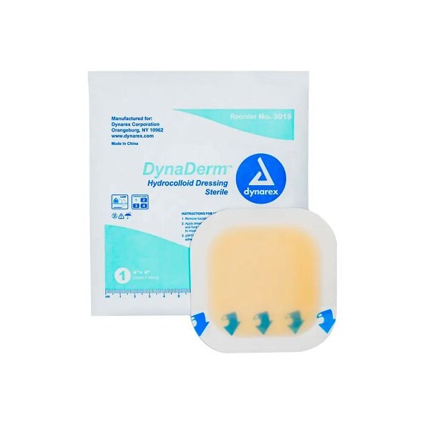 Dynarex DynaDerm Thin Hydrocolloid Dressing Bandage, 4inL x 4inW, 120 Pcs