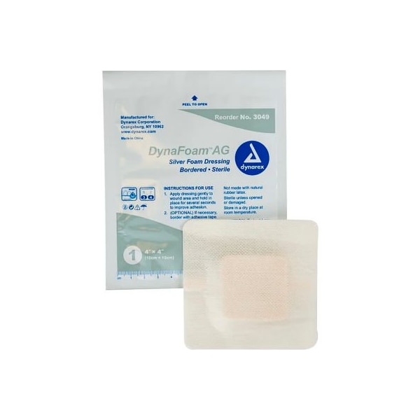Dynarex Dynafoam AG Bordered Silver Dressing, 4inL x 4inW, 10 Pcs