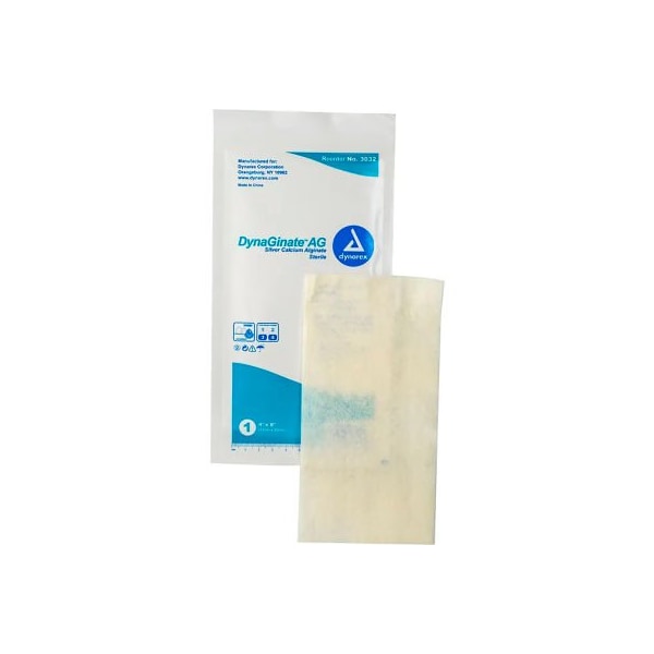 Dynarex DynaGinate AG Silver Calcium Alginate Dressing, 4inL x 8inW, 50 Pcs