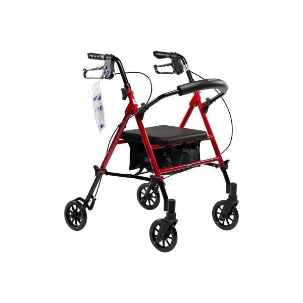 Dynarex DynaGo Flex Rollator W/ Adjustable Seat Height & Detachable Caster, Red