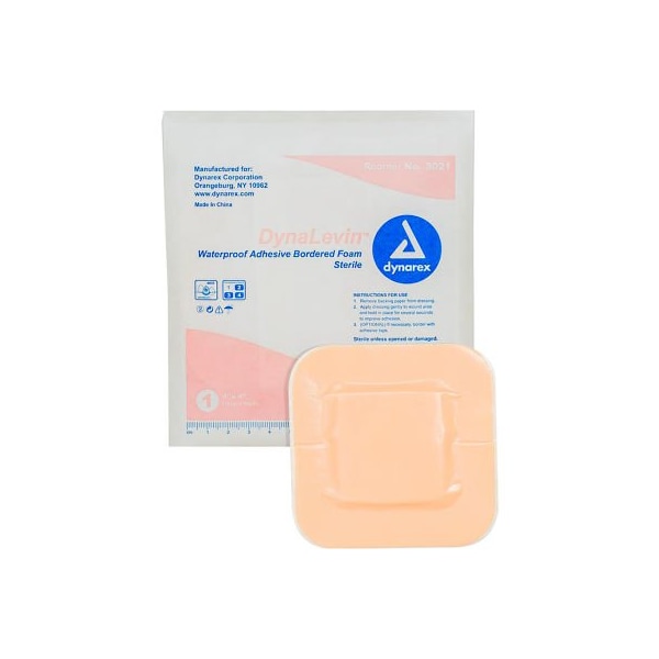 Dynarex DynaLevin Waterproof Adhesive Bordered Foam Dressing, 4inL x 4inW, 120 Pcs