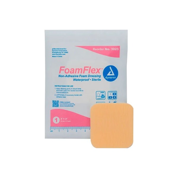 Dynarex FoamFlex Non Adhesive Waterproof Foam Dressing, 2inL x 2inW, 120 Pcs