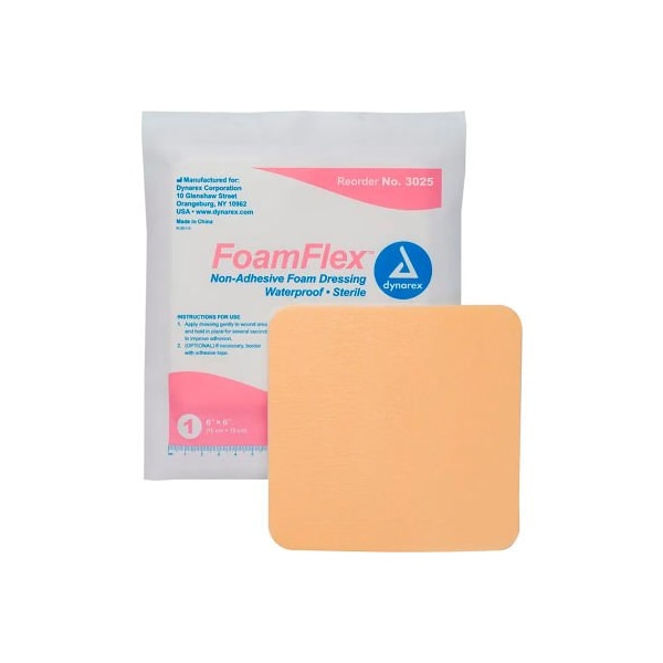 Dynarex FoamFlex Non Adhesive Waterproof Foam Dressing, 6inL x 6inW, 120 Pcs