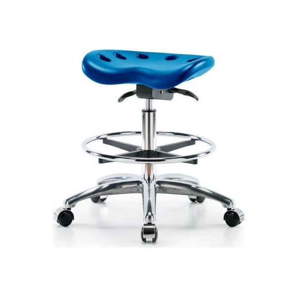 Interion Polyurethane Tractor Stool W/ Foot Ring and Seat Tilt - Blue w/ Chrome Base
