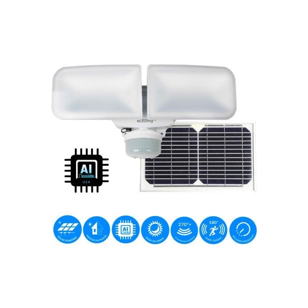 eLEDing Solar Dual Head AI SMART Sensing 10W 1200 LM 5000K LED Flood Light Dusk to Dawn