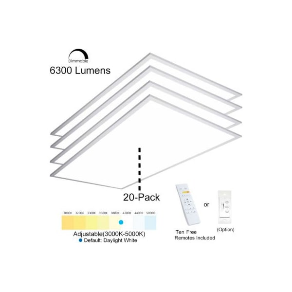 eSenLite 2x4ft 50W 6500 LM LED Ceiling Panel Troffer Light 3000-5000K CCT Dim w/ Remote 20 PK