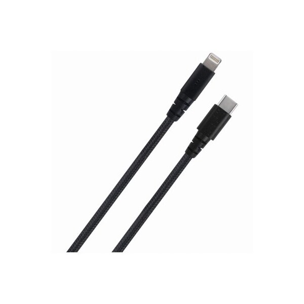 6 ft. nylon-wrapped braided cable. USB-C to Lightning. Stylish and strong this reinforced heavy-duty jacket resists scuffs and tangles extending the life of the cable. Extra-tough strain relief built into the connector protects the cable from damage caused by excessive bending ensuring rapid data transfer for the life of the cable.