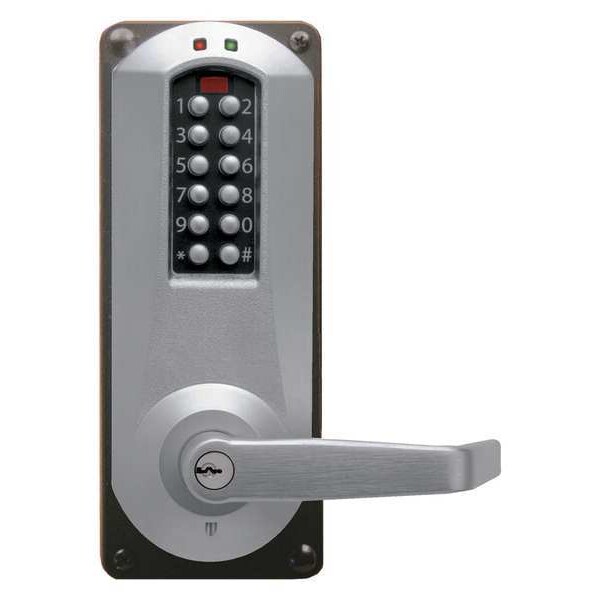 Electronic Keyless Lock, Function Entry with Key Override, Access Method Keypad, Mounting Style Mortise, Lock Material Solid Cast, Finish Satin Chrome, Series E5086, Handle Type Lever, Door Thickness 1-3/4 in to 2-1/4 in, Key Override Options Schlage C Keyway, Hand Nonhanded, Outside Height 9 7/8 in, Outside Width 3 3/8 in, Outside Depth 3 13/16 in, Keypad Material Solid Metal, Power Source (4) AA Batteries, Battery Life Up to 180,000 Cycles