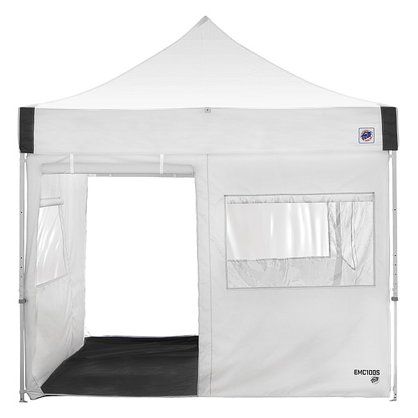 Portable Medical Tent, Length 10 ft, Width 10 ft, Center Height 6 ft 11 in, Side Height 81 in, White, Material Vinyl, Frame Material Steel, Fire Rating CAN/ULC-S109, CPAI-84, NFPA-701, Includes Air Filters and Storage Bag, Deluxe Weight Bag, Deluxe Wide-Trax Roller Bag
