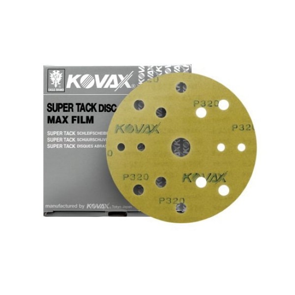 Ultra-Premium MaxFilm Sanding Discs deliver both super fast cutting speed and a uniform finish. Achieve cooler sanding and increased paper life with advanced Kovax anti-clogging technology. Available in grits P80 to P600. Film backing for maximum cutting power & durability|Advanced Anti-Clogging technology results in cooler sanding & longer paper life|Perfect for primer sanding, surface prep, metal sanding, and much more|Best-in-class finish quality dramatically cuts down sanding time & labor cost|50 discs per box