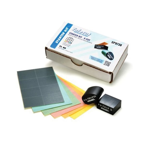No spot repair is out of reach with Toleblock S or QS with the full range of 8-Cut sheets. The 8-Cut Starter Kit comes with 1 sheet each of every grade in 8-Cut size. 1 sheet each of Tolecut 8-cut sheet K800 191-1527, K1200 191-1526, K1500 191-1523, K2000 191-1522, K2500 191-1528, K3000 191-1521 |1 pc each of Toleblock S 971-0047, Toleblock QS 971-0056