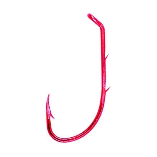 Lazer Sharp Baitholder Hook, Size 4, Barbed Forged, 2 Sliced Shank, Offset, Down Eye, Red, 10PK (Discontinued)