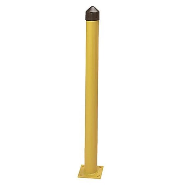 This round steel Bollard post can be placed anywhere you need an added layer of protection for your buildings and features a durable, baked-on powder coat in safety yellow to provide high visibility. each bollard post is made of 1/4"-thick steel mounted on 3/8"H x 8"-square steel plate that’s pre-drilled with 3/4"-dia. holes for easy installation. This bollard post includes a black, high-density polyethylene cap that can be removed so you can fill the post with concrete for extra strength. Anchor bolts not included. Post measures 42"H x 4-1/2"-dia. 50 lb.