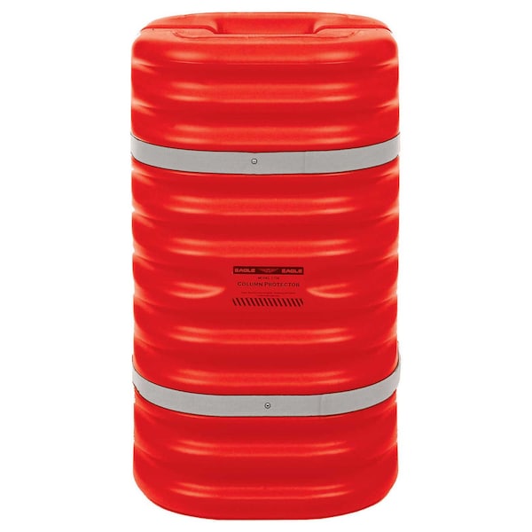 42H Orange column protectors for 8 column. Protects columns from structural dame from, fork trucks and other valuable equipment from costly damage and reduce personal injuries with these blow-molded high density polyethylene column protectors. Column guards absorb impacts up to an 8,500 pound fork truck, at 5 mph. Column protectors are weather, chemical and UV resistant. Stackable to expand protection vertically. Fits all types of columns. Column protectors install in seconds with 2 reflective straps.