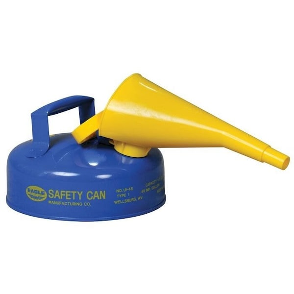 Type I Safety Can, Galvanized Steel, 2 qt, Self-Closing Lid, Includes Funnel, Blue, Kerosene