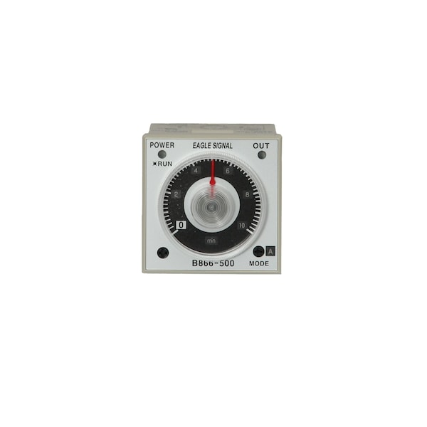 This multi-function dial set timer plugs in to an 8-pin socket part number 60SR2P06 and is a unique combination of versatility and simplicity make the Eagle Signal B866 Series the premiere low cost timing solution. Housed in a compact 1/16 DIN package, it can be Panel Mounted in 45 x 45 cutout or DIN rail mounted and changing the set time is as simple as turning a dial.