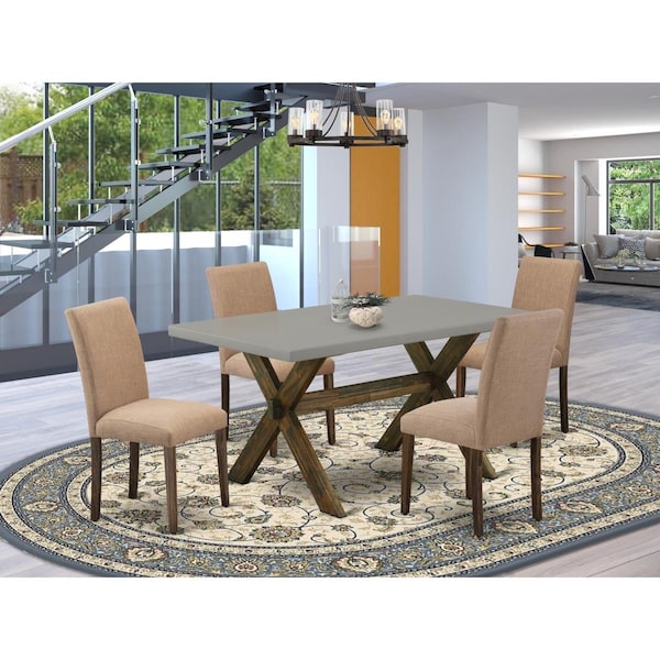 5 Piece X-Style Dining Table Set - Distressed Jacobean