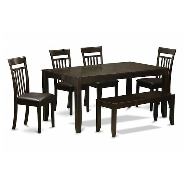 6 Piece Dining Table Set With Bench-Table With Leaf and 4 Chairs For Dining Room Plus Bench