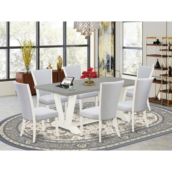 7 Piece V-Style Dining Room Table Set - Linen White