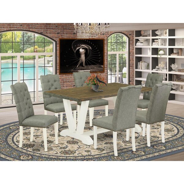 7 Piece V-Style Dining Table Set - Linen White