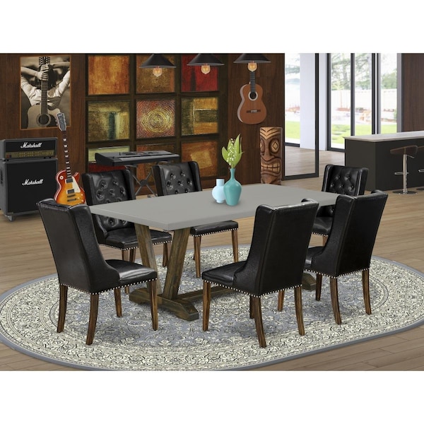 7 Piece V-Style Kitchen Table Set - Distressed Jacobean