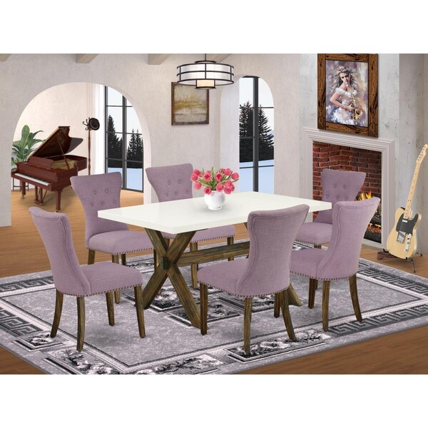 7 Piece X-Style Dining Table Set - Distressed Jacobean