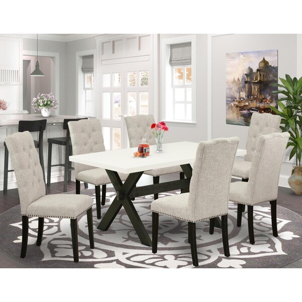 7 Piece X-Style Kitchen Dining Table Set - Dark Khaki
