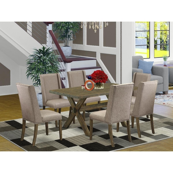 7 Piece X-Style Small Dining Table Set - Dark Khaki