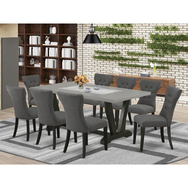 9 Piece V-Style Kitchen Table Set - Dark Gotham Gray