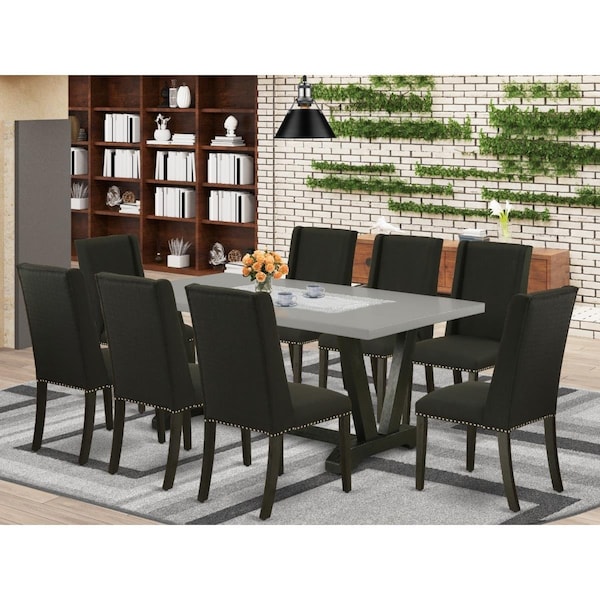 9 Piece V-Style Small Dining Table Set - Black