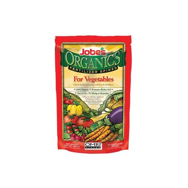 Jobes, 50 Pack, 274, Organic Vegetable Fertilizer Spike, In The Ground Feeding For The Most Efficient Delivery System For Organics, ReSealable Pouch Packaging