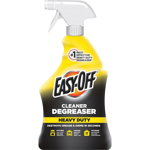 Easy-Off Cleaner Degreaser delivers strong grease-cutting formula that destroys grease and grime in seconds. With the heavy-duty formula, minimal effort is required to clean. It is great for the kitchen, garage and outdoors. Use the spray on stoves, ovens, vents, countertops, engine parts, driveways, tools, patio furniture, grills and sporting equipment.