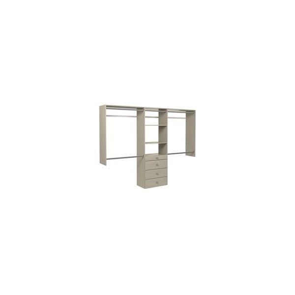 - PREMIUM STORAGE SPACE: Provides up to 14 feet of shelf space, 14 feet of hang space, one 4-inch deep drawer, and three 8-inch deep drawers
