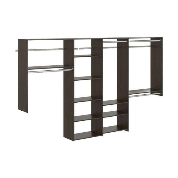 The Dual Tower 10-foot Basic Kit is easy installation and organization from beginning to end. This kit provides 32 feet of open shelf space to store stacks of sweaters, denim, shoes and more, such as decorative items and large bins to hold miscellaneous items. And 11 feet of hanging space keeps clothing off the floor and offers quick access to shirts, dresses and slacks. Easy to install, the Dual Tower Basic closet organizer hangs on wall-mounted steel rails and comes complete with installation hardware.