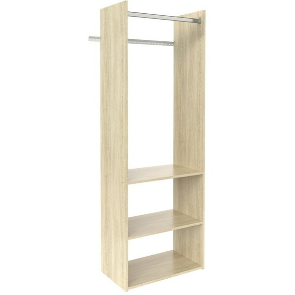 - Includes 2 - 72-inch vertical panels (72-inch high x 5/8-inch wide x 14-inch deep) 3 - 24-inch shelves, 1 - 24-inch hanging rod, 32-inch track/rail plus all needed hardware
