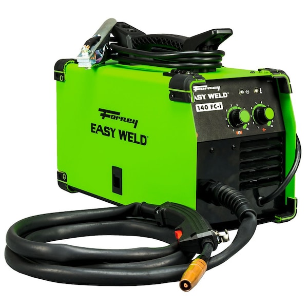 The Forney® Easy Weld 140 FC-i is a powerful flux-core wire welder. This machine is ideal for do-it-yourselfers, maintenance, repair, metal fabrication and hobbyists. Like the other Forney® Easy Weld machines, this welder is portable and weighs only 19 lbs. This unit is easy to use and features infinite voltage and wire feed speed control. The Forney® Easy Weld 140 FC-I is incredibly convenient, as it does not require gas and can run off standard household power as long as you have at least a 20 AMP breaker. Product Specifications: * Unit Dimensions Out of Display Box: 16.75" (425.45 millimeters) x 8.125" (206.38 millimeters) x 12" (304.8 millimeters) * Unit Weight Out of Display Box: 19 lbs. (8.61 kg) * Gasless/flux-core welding only * Portable * Torch wrap * Infinite voltage and wire feed speed control * 120-volt input, 140 AMP output * Welds 24-gauge up to 1/4" (6.35 millimeters) * Handles .030" wire * Includes: 8' MIG gun, 8' ground clamp and 20A - 15A adapter * Duty Cycle 30% @ 90A Recommended Accessories and Consumables: * Contact Tips: Forney® ITEM#'s 60170, 60171 and 60172 * Welding Nozzles: Forney® ITEM#'s 85336 and 85337 * Diffuser: Forney® ITEM# 85342 * Mild Steel MIG Wire: Forney® ITEM#'s 42285, 42286, 42290 and 42291 * Flux-Core MIG Wire: Forney® ITEM#'s 42300 and 42301 * Gun/Torch: Forney® ITEM# 84094 * Anti-Spatter Spray: Forney® ITEM# 37030 * Nozzle Gel: Forney® ITEM# 37031 Product Features: EASY TO USE * This is the ideal entry-level welder. This machine uses .030" flux-core wire, and has infinite voltage and wire feed speed control so you can dial in the perfect weld every time. POWERFUL * This welder features a 140 AMP output that allows you to weld up to 1/4" of mild steel. The welder is protected by an all metal case, and is big enough to handle 2 and 10 lbs. rolls of wire. PORTABLE * Weighing in at only 19 lbs., this machine can be easily carried to any DIY project, maintenance and repair job, garage and more!