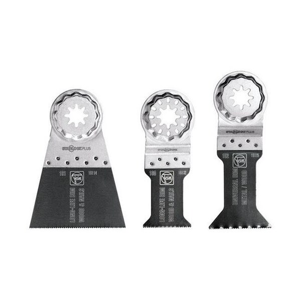 - Set includes: E-Cut Long-Life saw blades 1 1-3/8" W & 1 2-9/16" W and E-Cut Universal saw blade 1 1-3/4"W