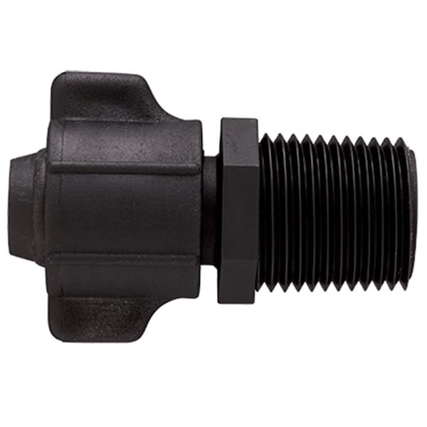 Features -0.5 in. Male Pipe Thread x 1/2 in. Universal Drip Tube Adapter -Connects To All Major Brands Of 1/2 in. & 5/8 in. Distribution Tubing -To Connect Slide Tubing Over The Insert & Hand Twist The Outer Nut To C in. The Tubing In Place. -Dimension - 2.5 x 1.38 x 1.38 in. -Item Weight - 0.02 lbs.