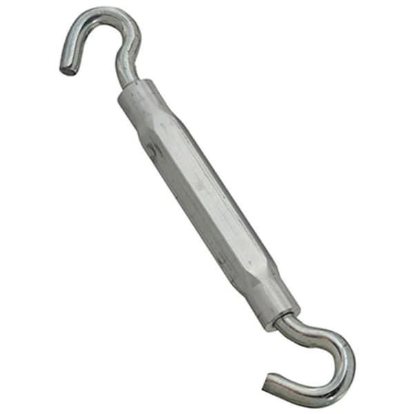 Features -Hook & Hook Turnbuckle. -Steel With Aluminum Body. -Size - 0.31 x 9 in. -Material - Zinc. -Designed For Tightening Or Drawing Together Various Lines & Cables. -Hex Body Allows For Ease Of Adjustment By Hand Or With A Wrench. -Steel Wire Hook On Both Ends. -Extruded Aluminum Body. -Bagged Loose. -Dimension - 0.57 x 1.19 x 6.43 in. -Item Weight - 0.19 lbs.