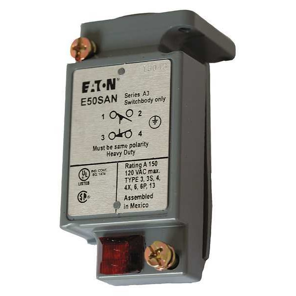 Limit Switch Body, Contact Form 1NO/1NC, For Use With E50 Limit Switch, AC Contact Rating 10 A @ 12 V, NEMA Rating 1, 12, 13, 2, 4, 6, 6P, Electrical Connection Not Applicable, IP Rating IP67, Operating Temp. -40 Degrees to 221 Degrees F, Standards CSA, RoHS, UL Listed