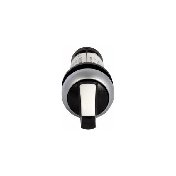 22.5 MM, 1NO, NEMA 4X/13, IP65, Black/White Button, Silver Bezel, Left-Right 60D, 2-Position, Maintained, Knob, Thumb Grip, V Position, Non-Illuminated Selector Switch