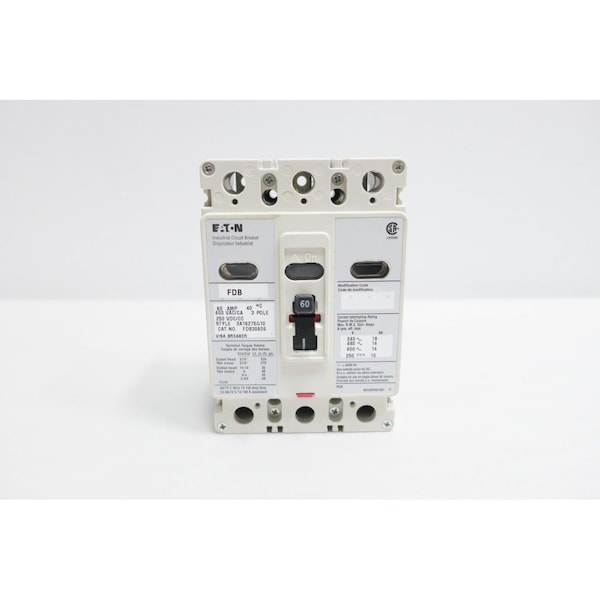 3P 60A AMP 600V-AC 250V-DC MOLDED CASE CIRCUIT BREAKER
