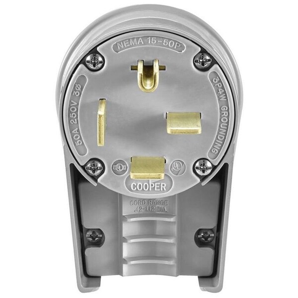 250 VAC 3-Phase, 50 A, 15-50P, 3-Pole, 4-Wire, Grounding, Gray, Nylon, Angled, Polarized, Straight Blade Power Plug