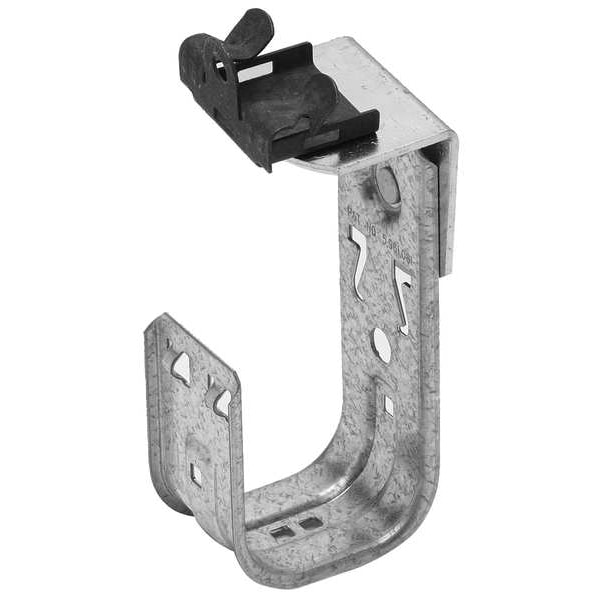 J-Hook, Mounting Location Beam, 360 Degrees Horizontal Rotation, Color Silver, Max. Load Capacity 30 lb, Max. Bundle Dia. 2 in, Material Galvanized Steel, Hammer On, Flange Thickness 1/8 in to 1/4 in, Includes Locking Latch Yes, Description/Special Features Beam Clamp Assembly, Standards cUL, UL